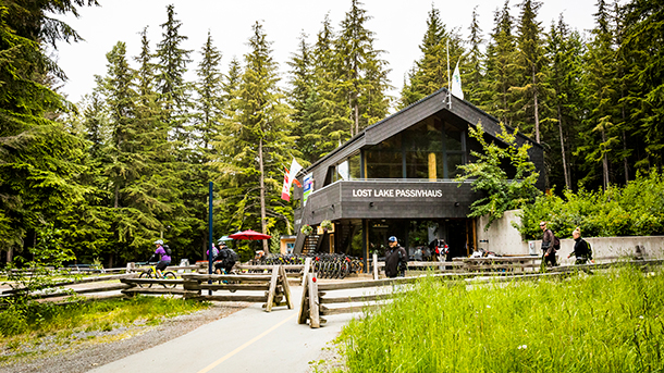 Just off the Valley Trail you will find the Lost Lake PassivHaus which was built as the home base for the Austria Olympic Team during the 2010 Winter Olympics. The House was then donated by the Austrian Passive House Group to the community afterwards. Today it is a lodge, café, cross country skiing and mountain biking rental shop. The House itself is a model for sustainable design and uses 90% less energy than a traditional house because it doesn’t have an active heating and cooling system because it was designed to trap the heat in the winter and allow it to escape in the summer.